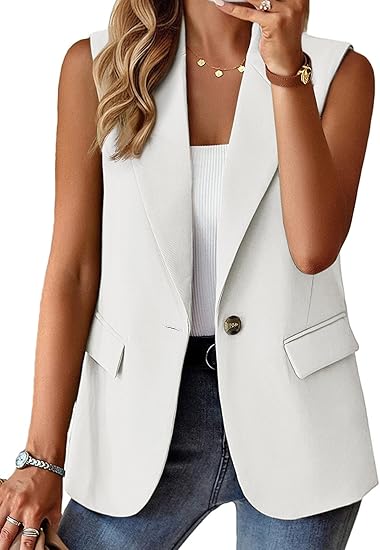 - 【Main Features】Women's business casual top, sleeveless, fully lined, two pockets, allowing you to carry small necessities with you. Classic notched lapels, sleeveless, one button, spare button, fully lined, maintain an elegant look. Makes it a perfect choice for formal occasions, business meetings, etc.