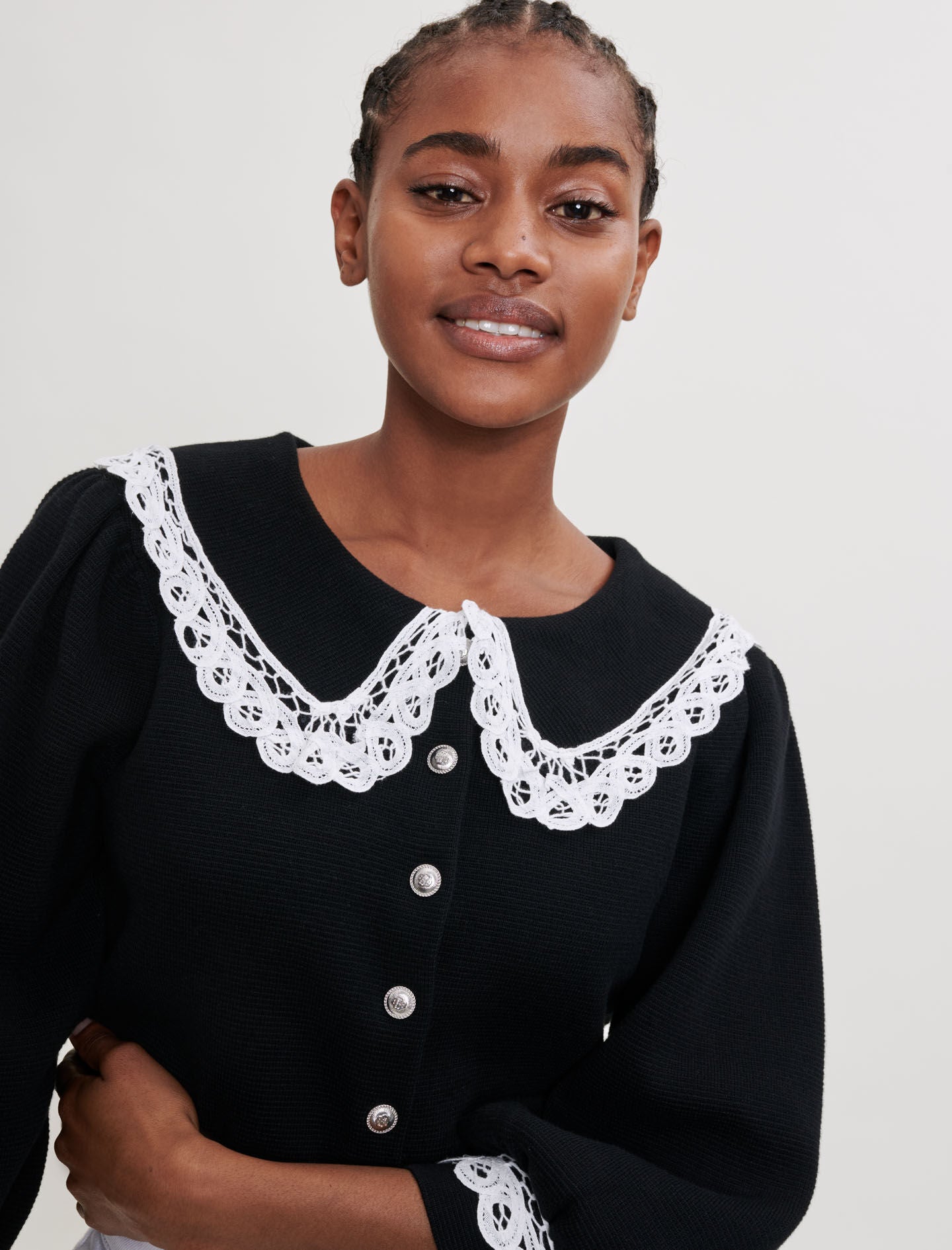 - Black loose-fitting cardigan