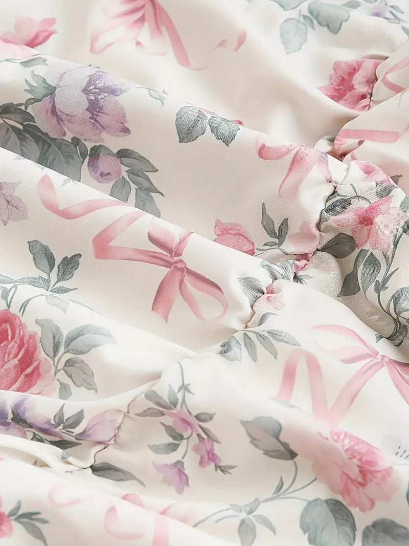 Print Ruffle Hem Dress with Tie-Shoulder Design - Backless Ruched Asymmetrical Dress for Women, Spring/Summer Vacation Style, Machine Washable, Summer Fashion | No Stretch Fabric, Cute Dresses