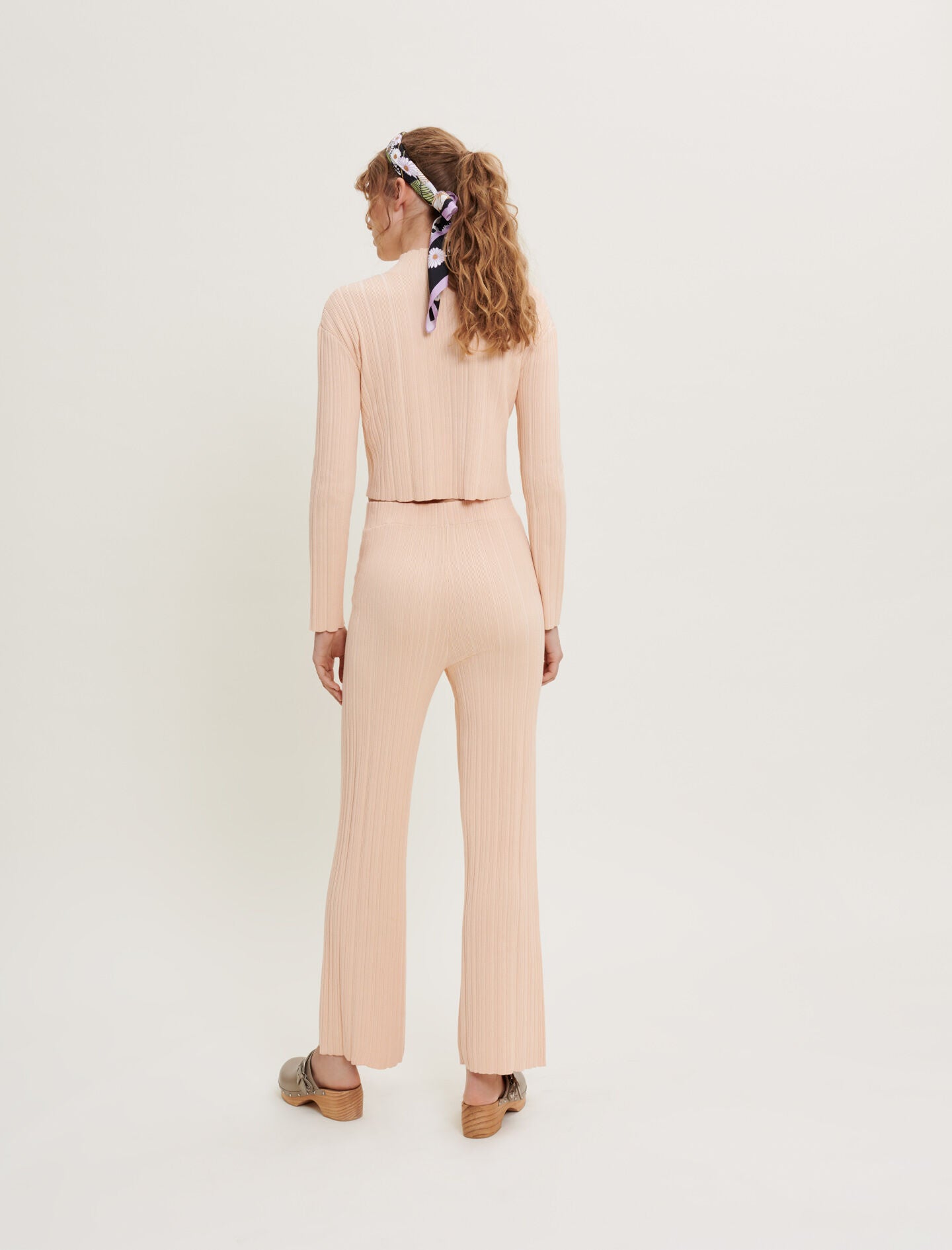 Fitted sweater. Stretch knit fabric with plain-colored ribbing. Long, close-fitting sleeves. Stand-up collar. Can be worn with the PELINE Pants to complete the look.