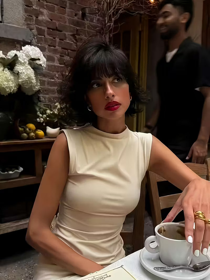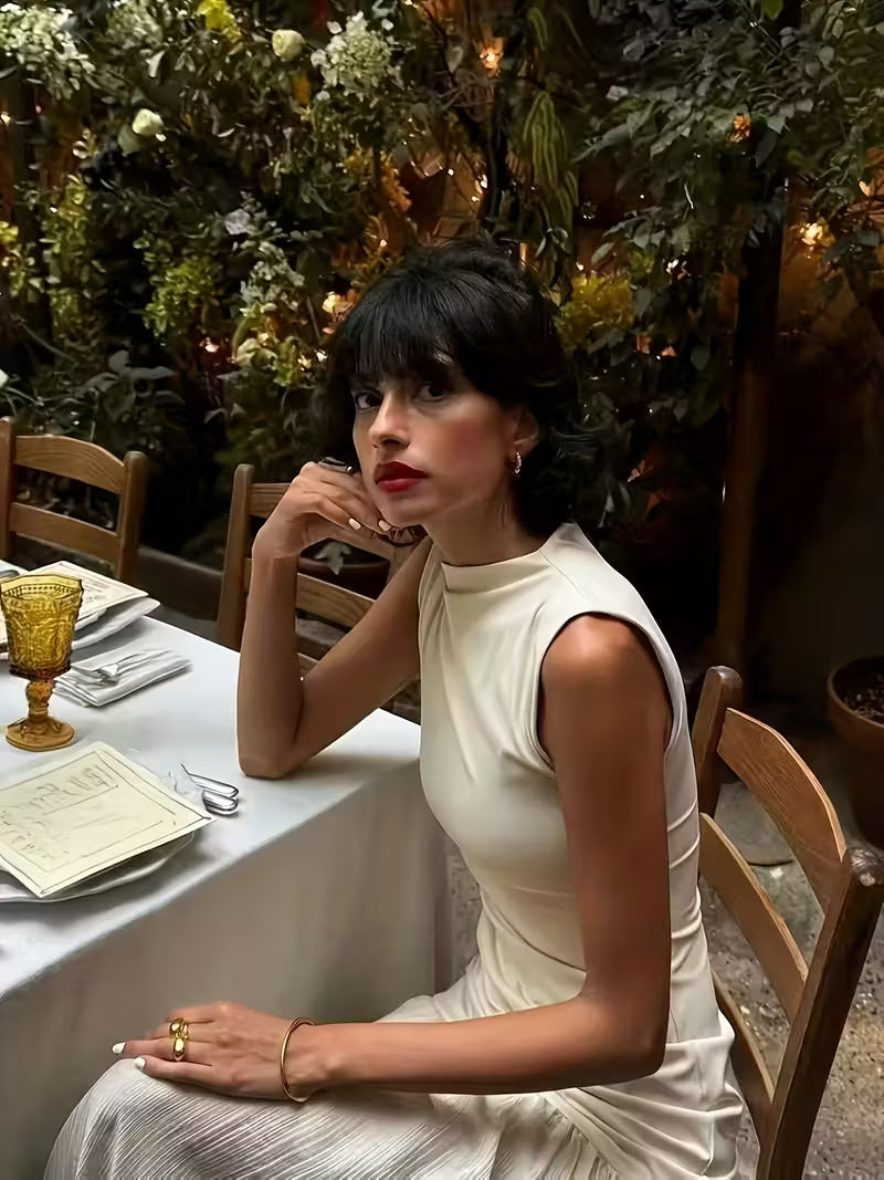 Women's French-Inspired Elegant Sleeveless Dress - Slim Fit Top & Flowy Maxi Skirt, Solid Color Round Neck Long Dress, Machine Washable All-Season Casual to Formal Wear, Everyday Stylish Outfit, Sophisticated Fashion